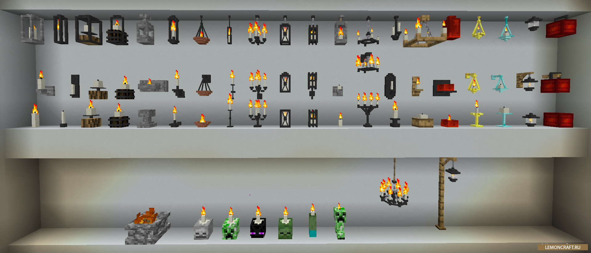 Мод ATLCraft Candles добавит в игру большое количество различных предметов, которые позволят украсить интерьер игры. Теперь вы сможете освещать свои строения используя люстры и свечи. Так же можно установить фонарные столбы возле дома. Различные подставки и подсвечники позволят сделать все это в замысловатой форме.